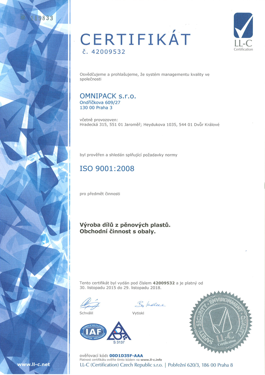 Naše výroba i vývoj podléhá přísným pravidlům kvality, na základě toho jsme získali patřičné certifikáty.
